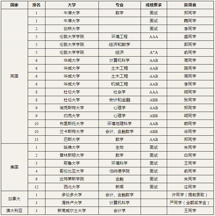 教师团队资格获得美国大学理事会College Board 认可。中心课程均由资深外籍教师执教,同时配备海归助教辅助教学。在本中心注册的学生可直接通过UCAS系统,与世界学生同步申请全球知名高校,而学习费用仅为在国外学习同类课程的1/3。中心所有毕业生均被包括英国剑桥、牛津、帝国理工学院、伦敦政治经济学院、华威大学、杜伦大学、约克大学;美国普林斯顿、加州戴维斯分校、加州圣地亚哥分校、威廉玛丽学院;加拿大英属哥伦比亚大学;澳州墨尔本大学、新南威尔士大学等世界一流名校录取。