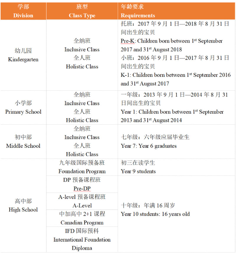 全纳班(实验班)学费标准:40000元/学期