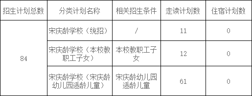 1. 上海宋庆龄学校招收一年级新生84人,拥有上海市户籍或港澳台永久身份且于2013年9月1日至2014年8月31日出生的适龄儿童。