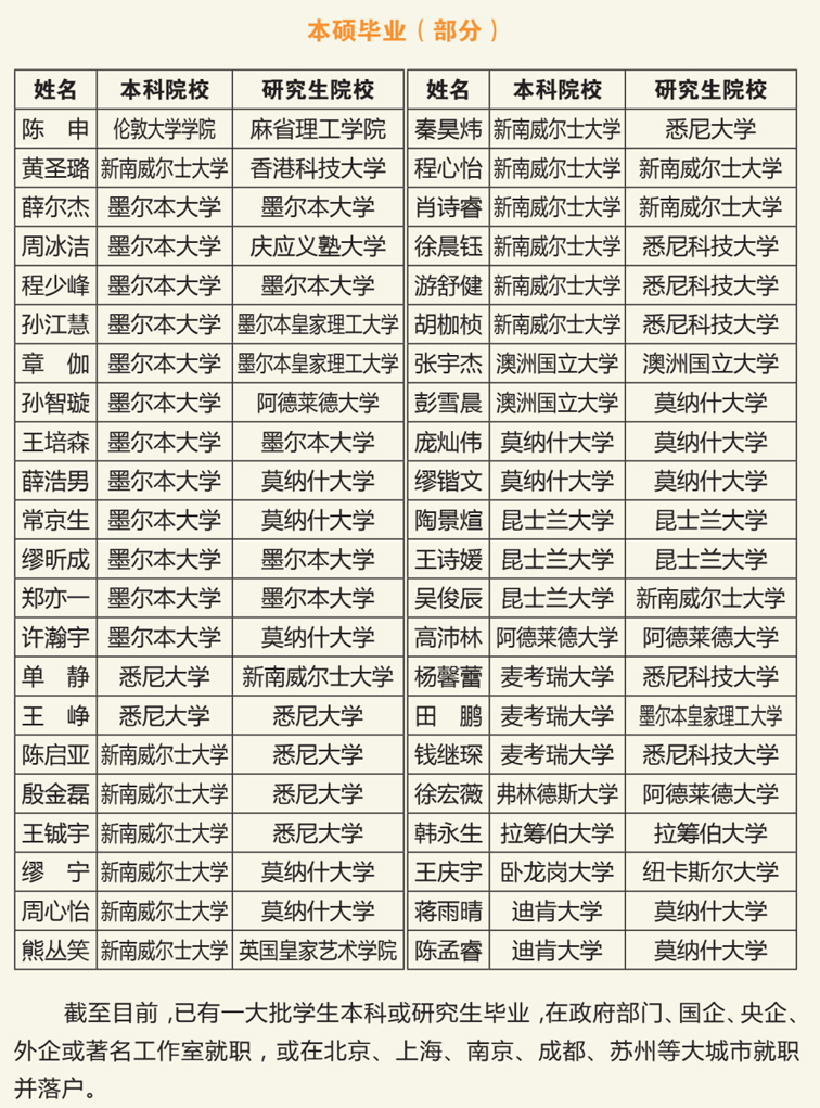 毕业生大学录取榜(部分)