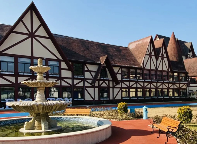 佘山校区位于佘山脚下,依山傍水,风景宜人,整个校区建筑的外观由一种泛红的深棕色线条勾勒,有种浪漫温馨的氛围。