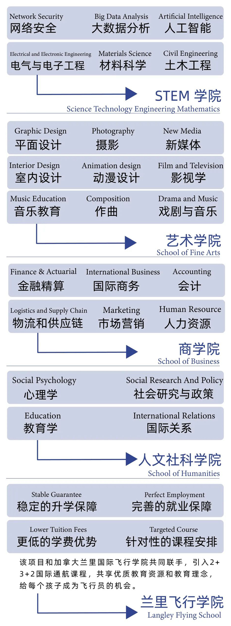 学生在入学后,我们根据每个学生的特点量身定制升学路径。升学指导从高一开始,历时三年时间,通过升学专题讲座、生涯规划指导课程、1对1升学咨询、海外名校招生官面对面交流等多种形式,帮助学生尽早确定升学目标,确保每- -位同学进入到目标大学学习。