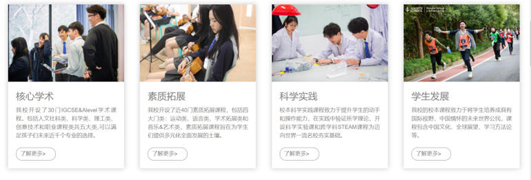 上海阿德科特一直致力于打造四维一体的课程体系,提供百余门课程供学生选择,包括学术核心课程、素质拓展课程、科学实践课程和校本学生发展课程。