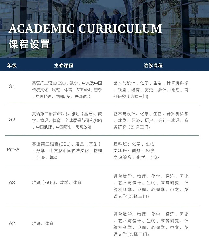 在学术课程板块,我校开设IGCSEA-Level 共计30门课程,是目前国内开设IGCSEA-Level课程最多的A-Level 学校之一,可以最大化满足学生专业选择。
