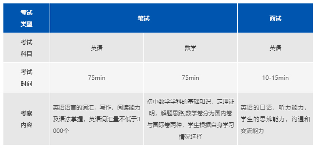 上海阿德科特学校入学考试分为笔试(英语,数学)、面试(英语)两部分。