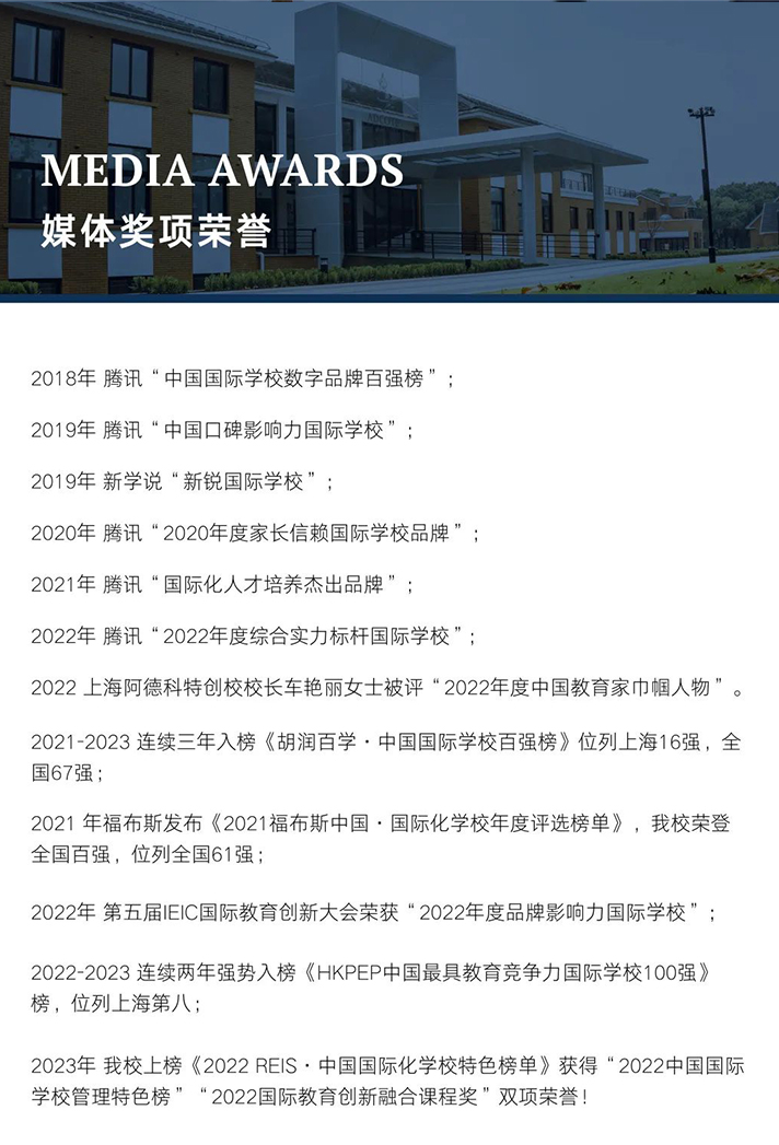 今年,是我校办学第六年,六年来上海阿德人一直深耕国际教育领域,旨在为孩子们带来更好的教育。创校以来,我校凭借先进的教育理念、强劲的师资配备、优异的教学成果,相继获得众多极具国际影响力的世界性学术官方机构的认证。