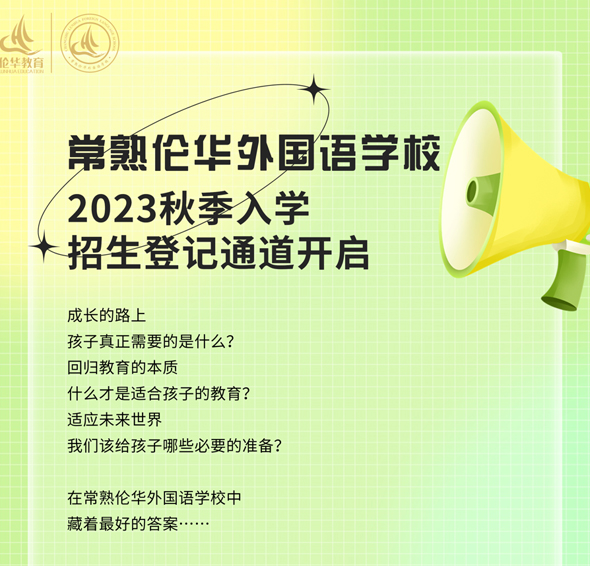 常熟伦华外国语学校(原常熟国际学校)于2011年建校,围绕6C素养体系(Creativity创新力、Cooperation合作力、Communication沟通力、Caring博爱、Confidence自信、Commitment 奉献),追求全人教育,努力培养真真实实、活活泼泼、快快乐乐的人才。