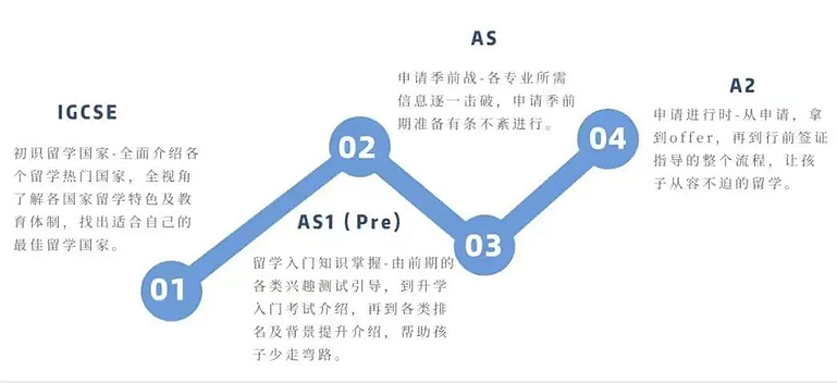 西交英澳升学规划时间轴贯穿始终,包括升学规划和职业生涯发展两方面重点内容,有生涯规划课,一对一学生面谈,一对一家长面谈以及升学规划一人一案等,帮助学生成功申请最适合自己的海外大学,冲刺世界名校。