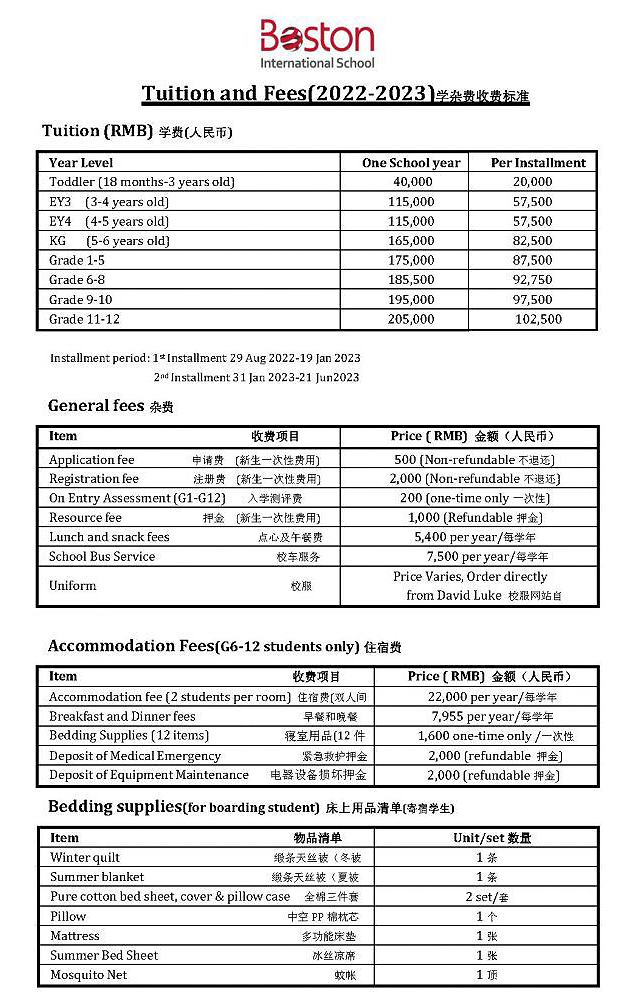 学杂费 2022-2023
