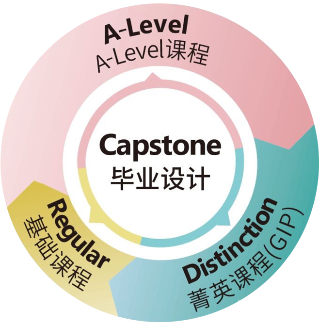 A-Level课程项目包括三类课程:基础课程、A-Level课程和GIP菁英课程。