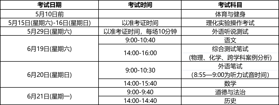 2021年初中学业水平考试时间安排