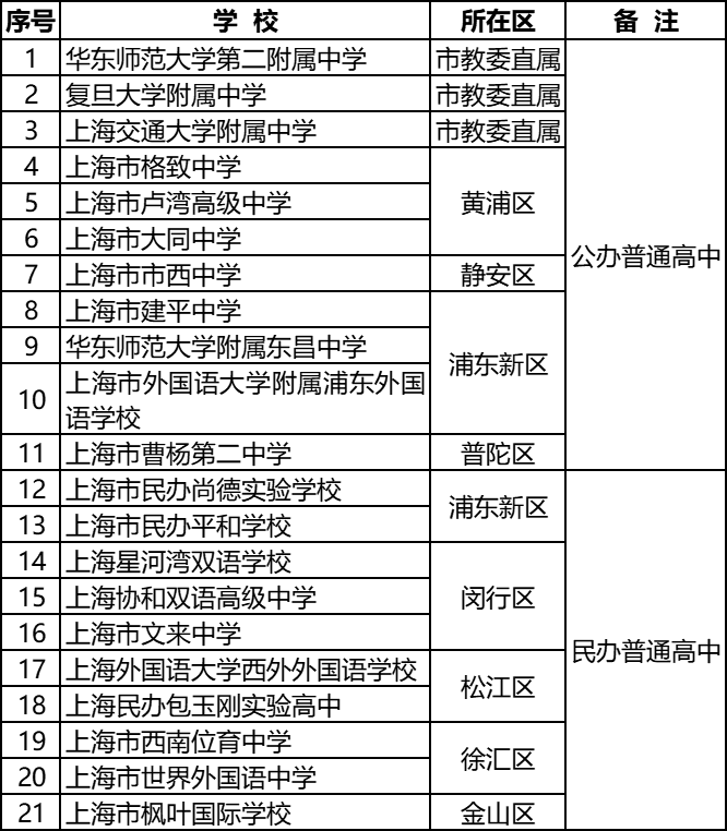 与此同时,本市共有10所公办高中、10所民办高中和1所中外合作办学学校进行国际课程班试点招生工作也公布了。