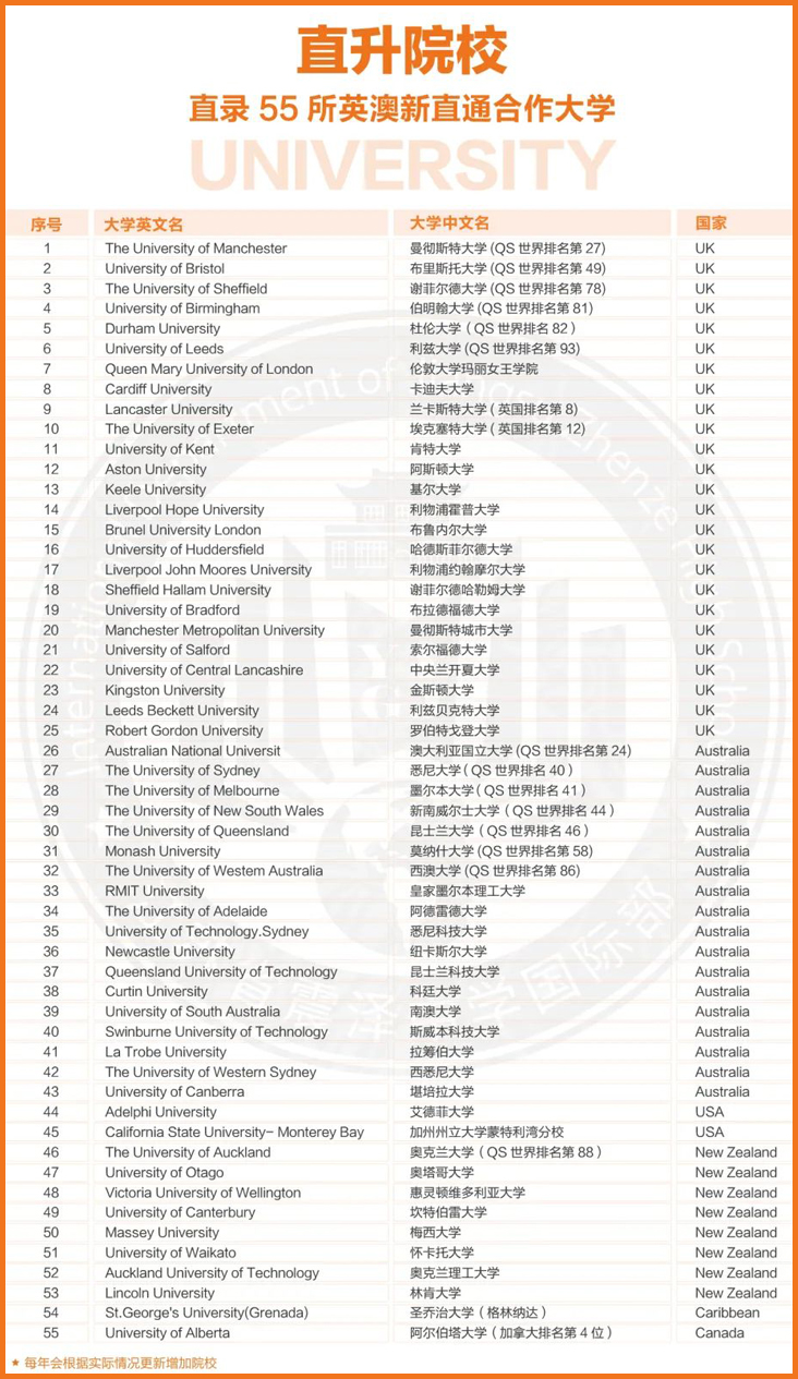 55所海外直升院校