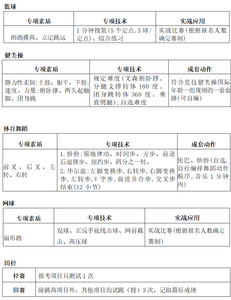 5、体育专业考试内容