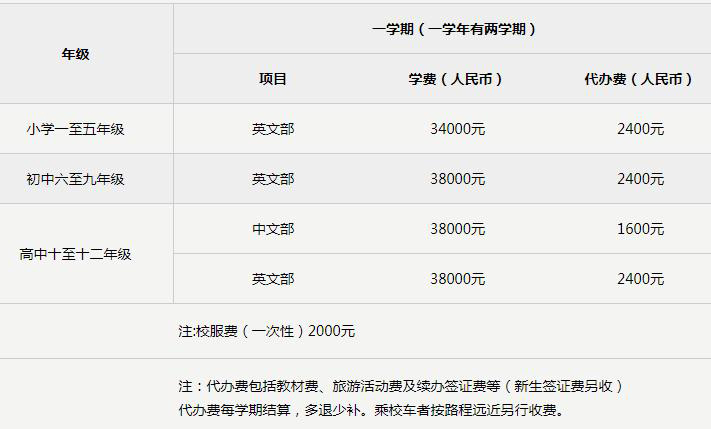 每学期收费标准如下: